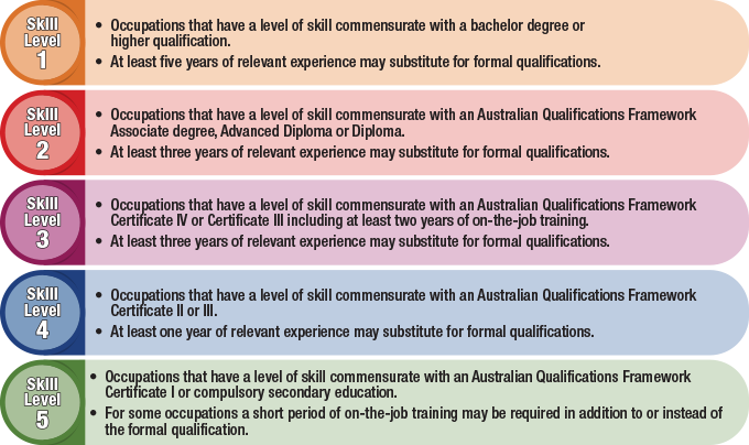 - Xác định Cấp độ Kỹ năng: Mỗi mã ANZSCO đều đi kèm với một Cấp độ Kỹ năng (Skill Level) từ 1 đến 5, quyết định trình độ học vấn tối thiểu và/hoặc kinh nghiệm chuyên môn mà bạn phải sở hữu.