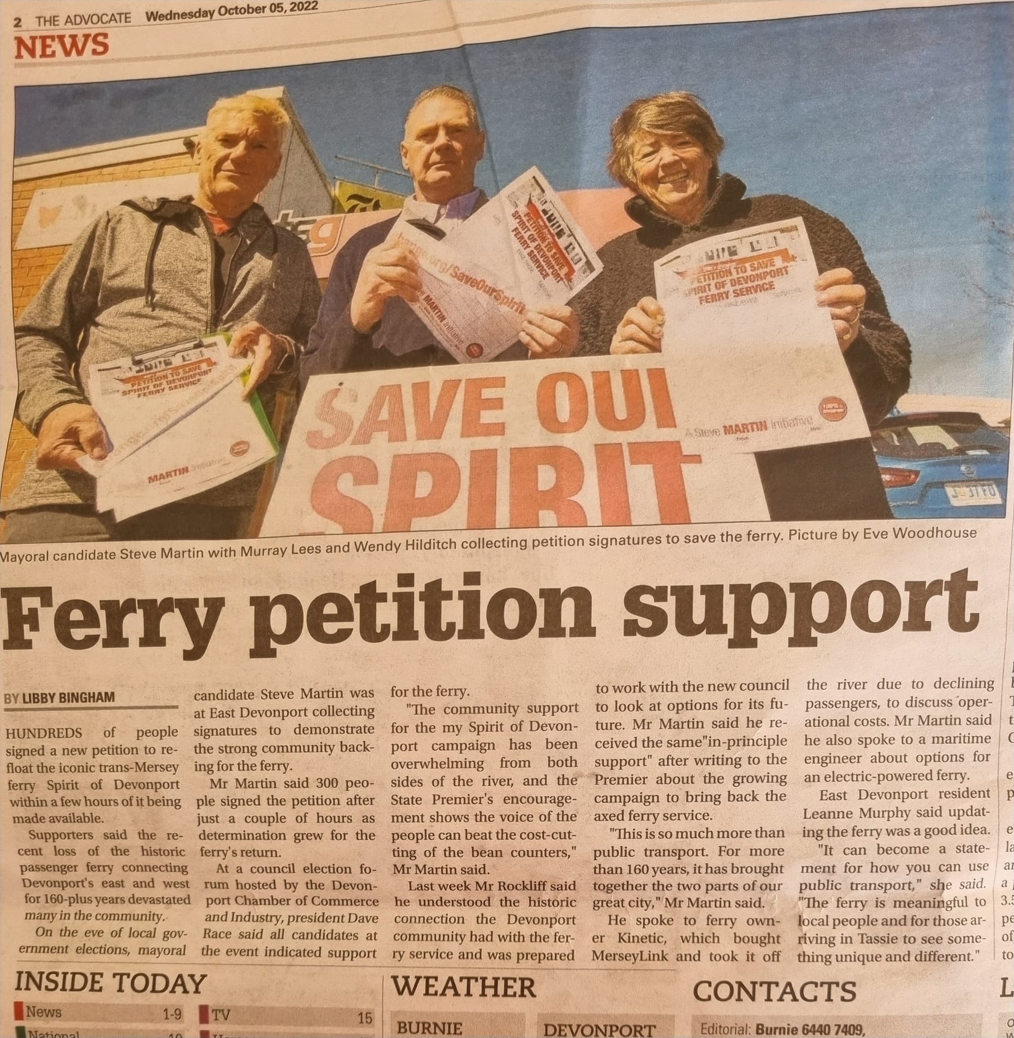MK Lees News Tasmania Bài báo về nỗ lực bảo vệ một tuyến phà (tàu thủy) quan trọng. Một bài báo ghi lại sự tham gia của Mr. Murray Lees trong chiến dịch bảo vệ tuyến phà quan trọng tại Tasmania.